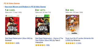 Update: Amazon's percent change listings don't appear to refer to sales specifically, but instead to the sales rank of the item (via Twitter user ZhugeEX) . So Red Dead Redemption isn't selling 6,329% more copies, its rank in Amazon's PC and video game sales category just went up by that much. Still notable, but not quite the same thing.