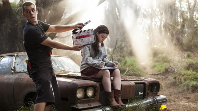Zach Cregger and Julia Garner behind the scenes in Weapons