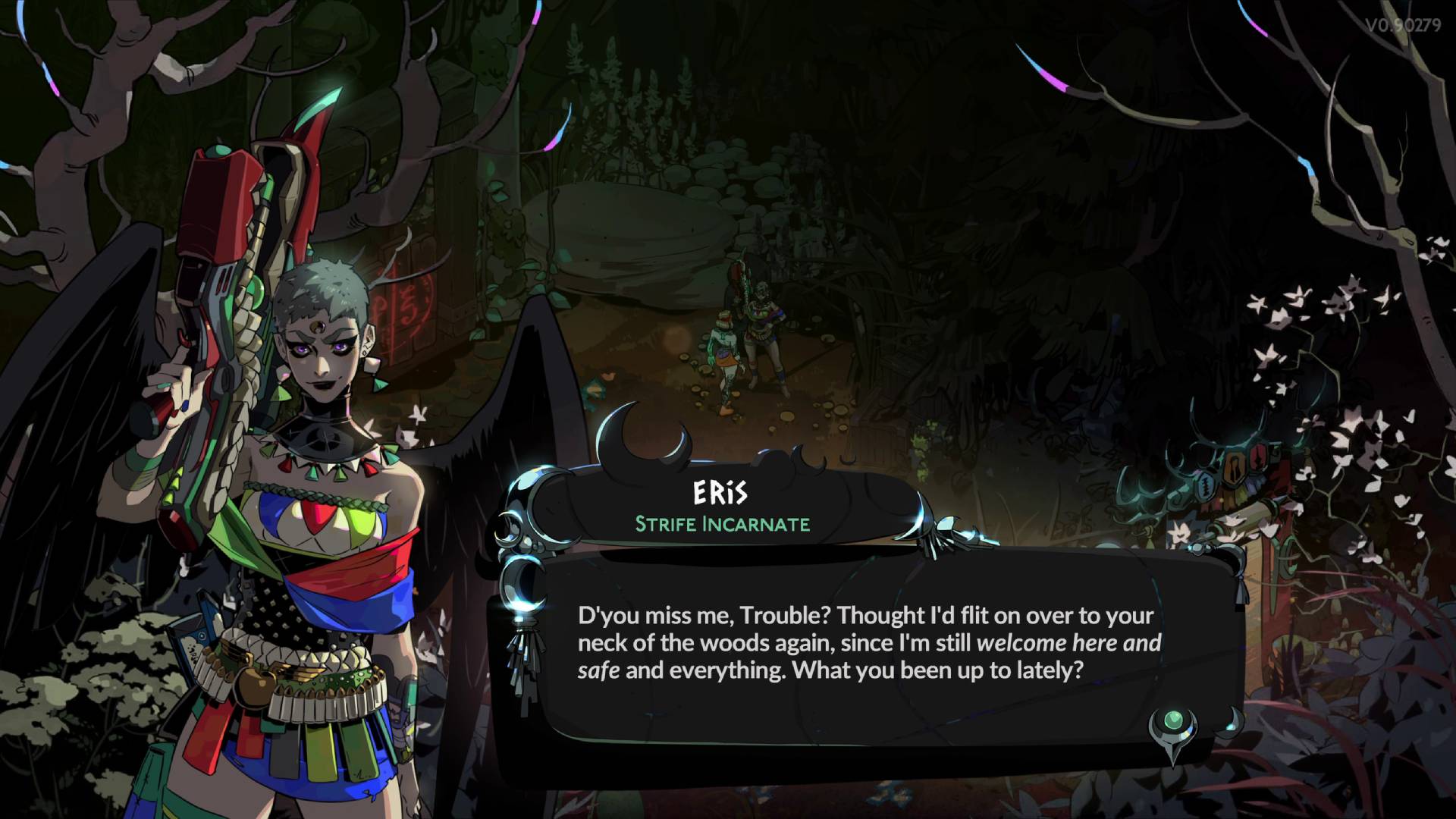 - Eris, Strife Incarnate: Appears occasionally in the Crossroads to gloat, moan, and be a general nuisance, especially by chucking junk all over the floor near where she stands.