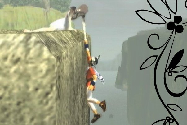 Above: Heroic roles reverse as Yorda grabs Ico and saves him from plummeting to his death