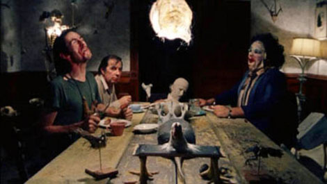 Most Dysfunctional Element: The family is presided over by a decrepit old patriarch, a figure so desiccated he can hardly lift a hammer. The fact that he takes charge over dinner might be normal, were there not a young girl tied up at the other end of the table.
