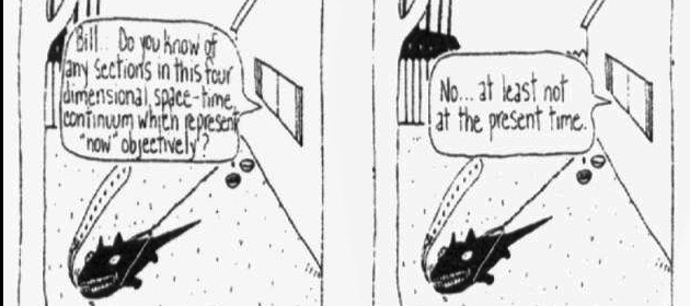 The images themselves stay the same in every issue, but the speech bubbles change as unseen family members in the house spout odd paradoxes (“If everything is real... then nothing is real as well”). Sometimes, the dog gives his own unique verdict. Nuts.