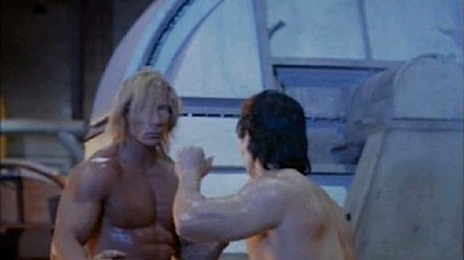 Then there’d be a scene where he rides a friendly whale that helps him put the kibosh on Jones’ skinhead terrorist.