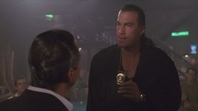 The Brawl: Steven Seagal's ponytail-wearing narcotics cop strolls into a pool bar and faces off against some wise-mouthed schmuck who just can't seem to stop talking. That is, until Seagal decides it's time to take these guys down…