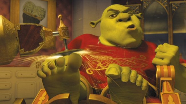 The Comedy: After the brilliance of Shrek 2 , this is an all-time low for the franchise, with Shrek and Fiona now lumbered with a gaggle of screaming kiddies.