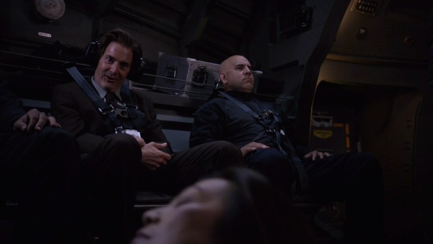 Then there’s Cal going crazy, the Inhumans attacking their own village with a captured SHIELD jet and Team Inhuman taking over the SHIELD ship. While Skye still seems to prefer fists and feet to using her powers it’s satisfying to watch Gordon, Lincoln and Multiple Woman quickly and efficient take the ship using their super-gifts.