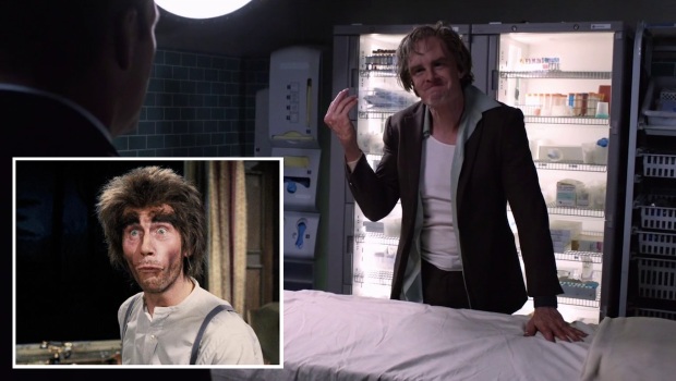 We’re not sure if we were supposed to laugh out loud at this moment but – considering Cal’s alter-ego in the comics is Mr Hyde – presumably this was supposed to be a not-so-subtle nod to all those off-camera movie Jekyll and Hyde transformations that ended with Mr Hyde’s hand appearing over the back of a camera.
