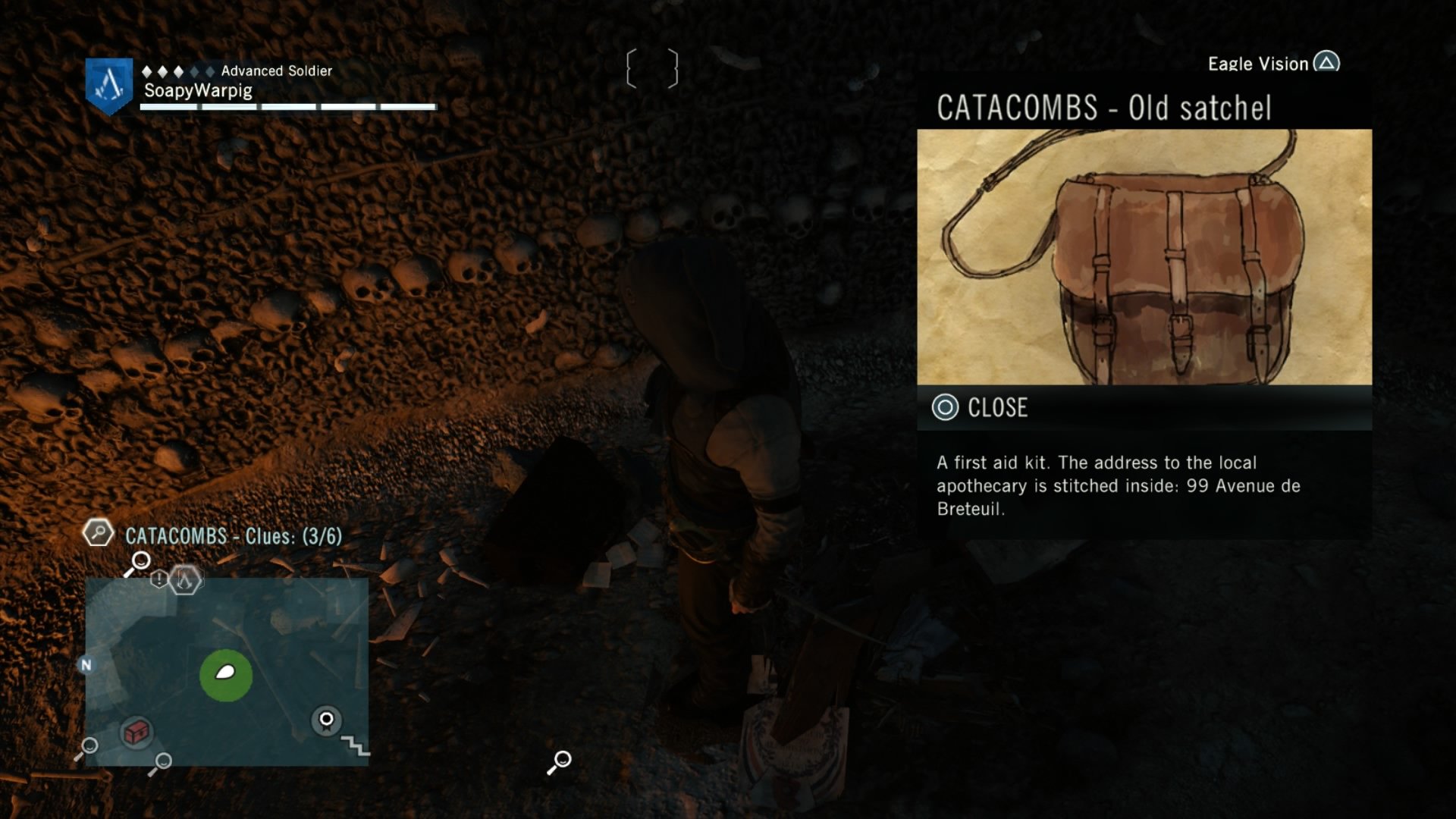 Access the catacombs by traveling to the underground icon on the map nearby. This is another murder mystery that discounts the corpse as a clue.