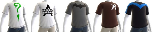 If you want to look a little more casual, there’s the set of t-shirts that are each 80 MS Points ($1.00). Fortunately the Robin, Batman, Nightwing, Riddler, and Arkham City shirts were made with equality in mind, as they exist for men and women.