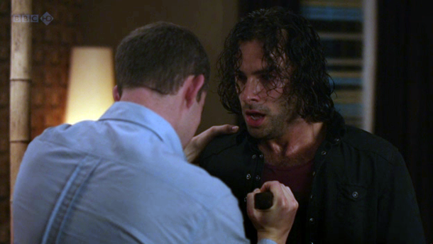Toby Whithouse is evil. Not for killing off Mitchell, but for toying with us, like a cat teasing a mouse before pouncing on it. We all kinda guessed Mitchell’s time was up; not only because of news stories about Aidan Turner flying off the New Zealand to film The Hobbit , but also because that was where the story seemed to be inexorably heading. But in that long last scene, first it looks like he is going to die, then it looks like he’s saved, and then wham! George, his best friend drives a stake through his heart, because, sniff, he loves him. If you were on Twitter that night following the #bringhuman conversation that night you’ll know that fans must have worn out the “o” buttons on their keyboards, typing, “Nooooooooooooooooooooooooooooooooo!”