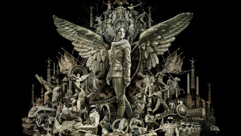 Influenced by the fantastic-realist style of artist Kris Kuksi, the poster is an intricately created snapshot of the world of the second film, as Katniss finds herself both at odds and in cahoots with the Capitol.