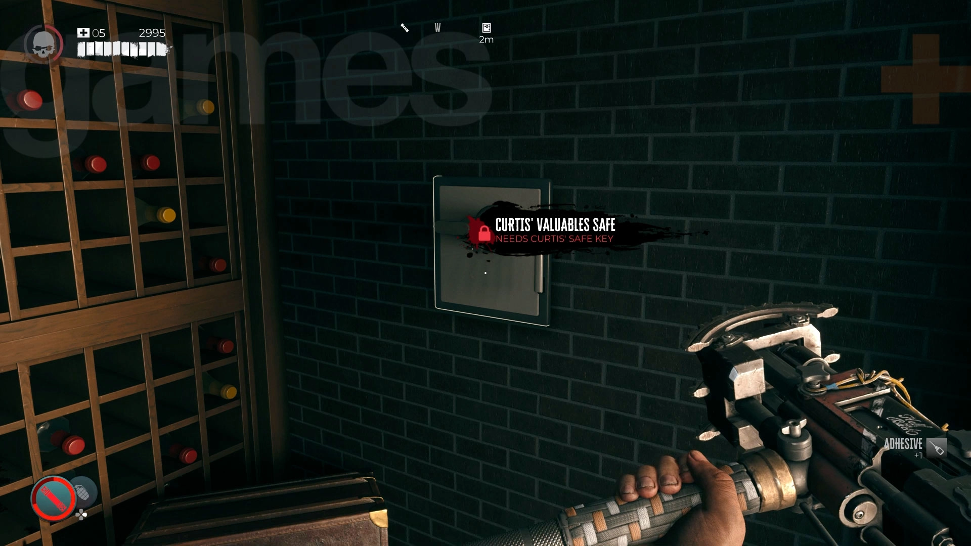Curtis' Valuables Safe is found inside his wine storage room, near the rear entrance by the staff restrooms and opposite the utility room by the garage side door. To find Curtis' Safe key in Dead Island 2, you need to head out into the rear area and look for a giant monogrammed crest on the ground. This area should be marked as a Screamer Hot Spot on your map, and if it isn't you may need to come back after progressing further through the story.