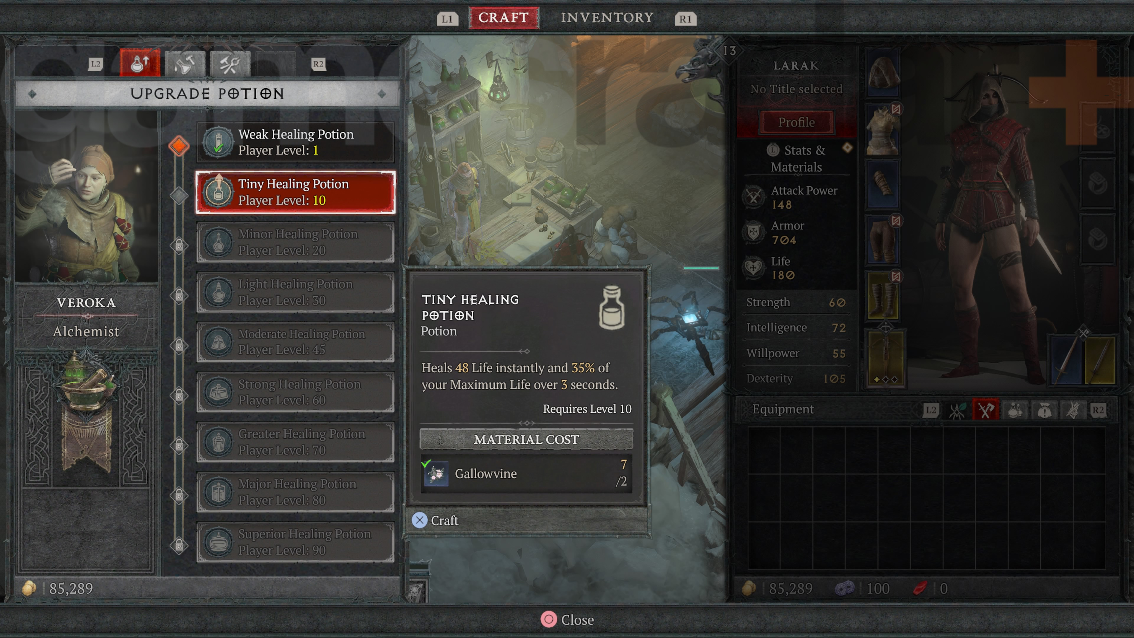 So, what do you actually do with Gallowvine in Diablo 4? Well, an early use for this herb is as one of the materials required to upgrade your Diablo 4 healing potions with the Alchemist, which is an essential improvement to assist you in combat. There are also a lot of Elixirs that you'll learn the recipes for as you progress, and a significant number of these feature Gallowvine as one of the materials necessary to craft them. You should therefore aim to hold a decent supply of this herb, so you have it to hand whenever it's needed.