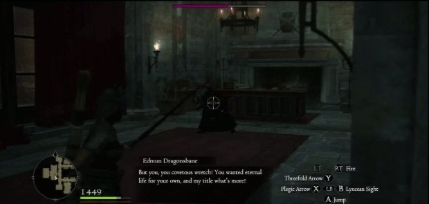 For this quest, you will need to make your way all the way northwest to the Greatwall which is beyond the path to Heavenspeak Fort. When you reach the Greatwall, you need to use the camp there and then run like mad through the gates. When you enter, there will be two cyclopes and many harpies in the yard. Ignore them and run forward and to the left to find a doorway that you can use to enter the keep. Follow the stairs up and you will come to a soldier behind a locked gate scared by a chimera. Kill it using the ballista in the room and then go through the now open gate. Follow the stairs to another fight with a rather brutal undead knight.