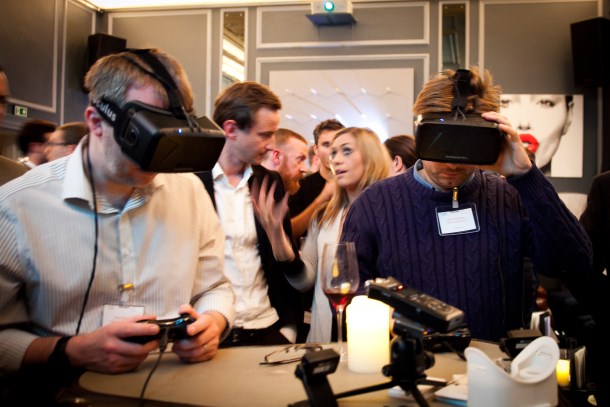 A broad range of interested companies attended the intimate evening event including NBCUniversal, The Tate, Harper Collins and Unicef, who had representatives present to either educate or be educated on the applications VR might afford their organisations. Alphabet Collective, a start-up formed by Matthew McGuire and John Henderson, demoed their VR engine for designing and showcasing building interiors. They spoke about the value of VR environments in helping film studios pre-visualise locations, to estate agents to offer virtual walkthroughs of luxury apartments, and to education, as students could remotely "visit" places like the Louvre.
