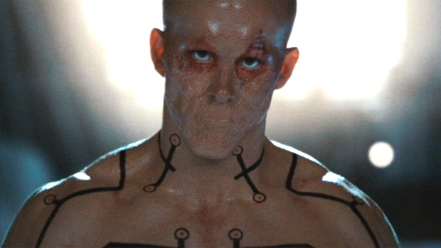 Technically Wade Wilson doesn't get to break the fourth wall until he adopts his masked, sass-mouthed persona, but he clearly already had the gift buried deep down. When he's strapped to a gurney in Ajax's sadistic, mutant-assembly sideshow, Wade begs his tormentors to have mercy and not make his super suit green or animated.