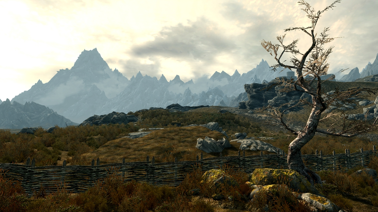 Skyrim's fantasy setting is one of the entire industry's finest accomplishments. The Spielberg-esque moment of looking out across the plains and seeing giants plodding along, clubs in hand, makes you feel like you're truly in another place. Another time. And, unlike Fallout's grey/brown world, there's massive variety whichever direction you set off in. Icy peaks and the lightly snow-dusted College of Winterhold contrast with sunny valleys and babbling brooks. Cold-feeling tombs with undead corpses lying in wait form a patchwork of tunnels beneath you. It can be achingly beautiful one minute and convincingly dangerous the next. All of it riveting.