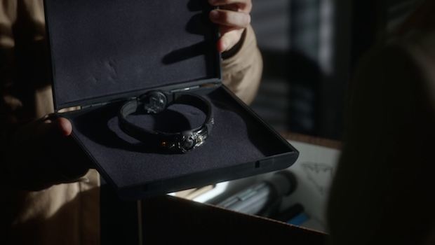 Cisco gives the sonic weapon that Black Canary has been using on Arrow a makeover. It’s now mounted on a “choker” – a famous feature of (most of) the comic book Canary’s costumes. In the comic world, however, the choker is merely decorative because her “Canary Cry” (as Cisco christens it here) is actually a superpower.