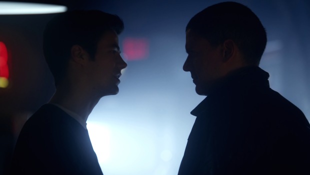 Wells: “Dr Harrison Wells: I want you to take a moment and think about all the things that define your life. All the people you love. Your job. Your co-workers. Your home. And now imagine if one day in a flash all of that vanished. Do you simply accept your new life, continue on or would you do whatever it takes to get back what was taken from you?” (There’s some great montage acting going on throughout this monologue – you know, where actors try to look pensive but just end up looking bored.)