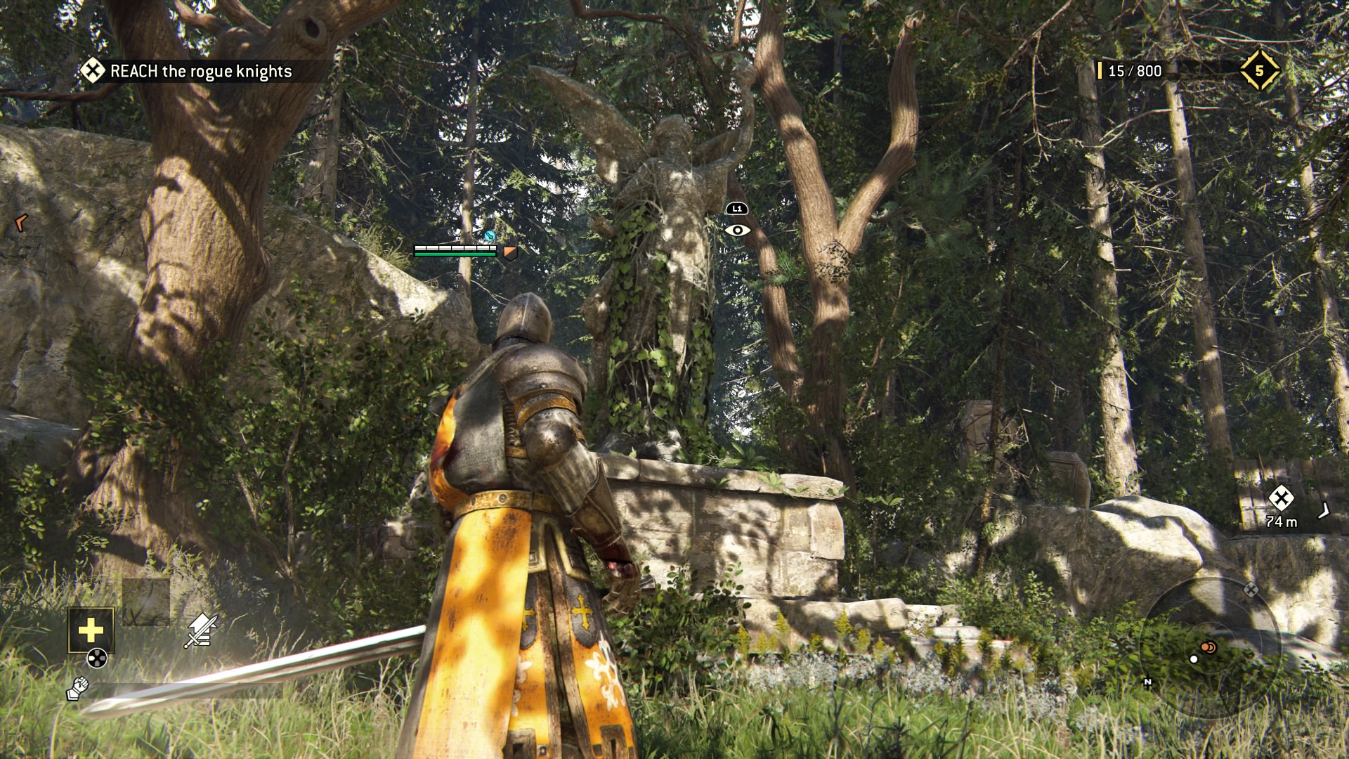 Keep going onwards towards the rogue knights but, before reaching that, veer right and you’ll find a giant statue.