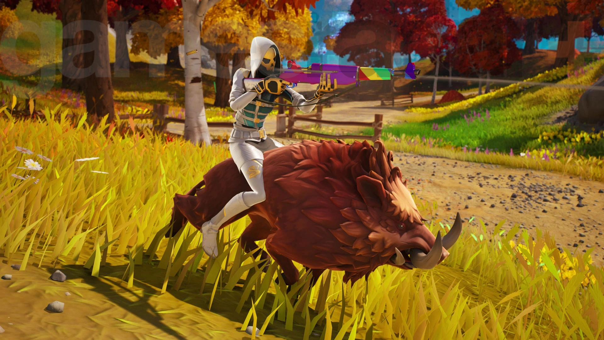 The challenge to eliminate an opponent while mounted in Fortnite has caused some confusion, as not all players know that mounted means riding on the back of wildlife in the context of the battle royale. This assignment is part of the Fortnite Geralt quests, and when you see that the reward is the Witcher's horse in the form of an Inflate-A-Roach glider then the whole thing makes a bit more sense. To tick this task off your list, we'll explain what to do to find and mount a boar or wolf, then how to eliminate an opponent while mounted in Fortnite.