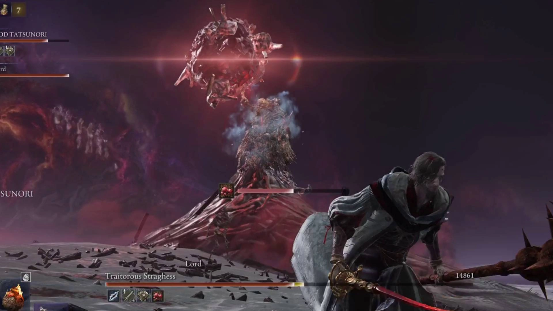 - Don't attack the boss's summoned minions unless you absolutely must. The Traitorous Straghess will conjure Scarlet Rot enemies of varying size to help but they are slow and generally not very threatening for the most part. Avoid them as much as possible, focusing solely on wearing down the Dreglord – the quicker you get through the first phase, the fewer enemies it's able to summon too!