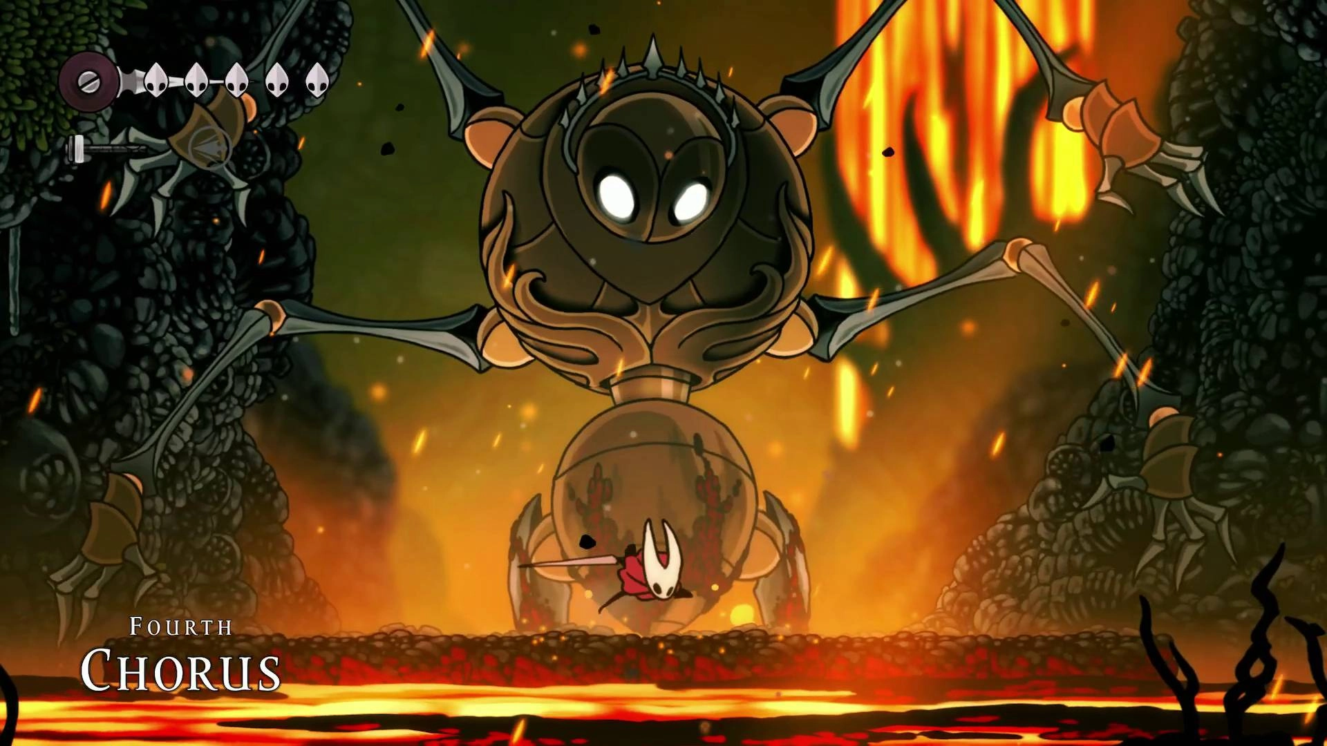 - A massive, mechanized bug that you'll run past on your way through the Far Fields but will only fight on your way out after unlocking the Drifter's Cloak. It uses it's massive fists to crush and swipe at Hornet and destroy platforms.