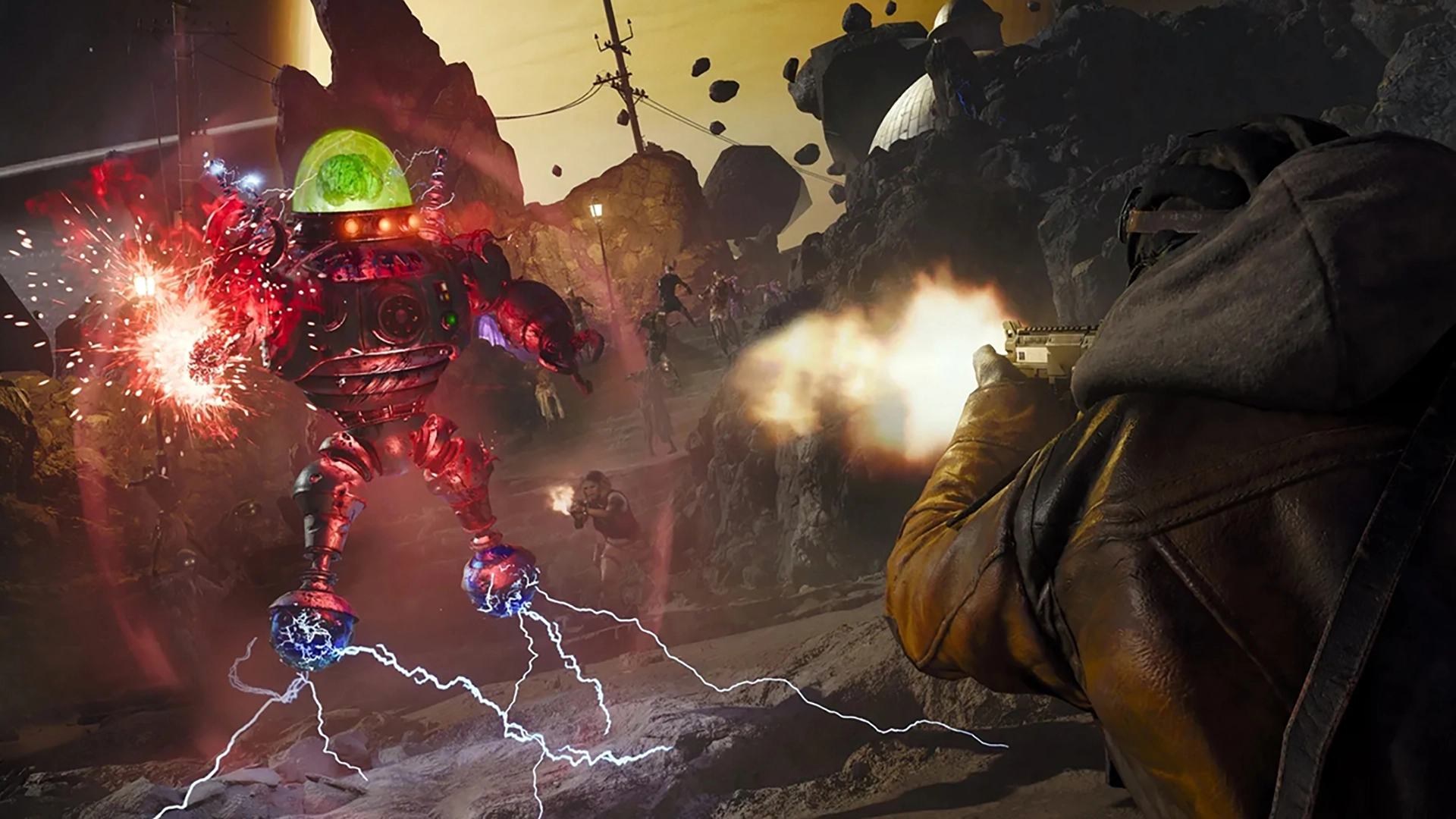 The bad news is that OSCAR isn’t vulnerable to any of Black Ops 7 Zombies’ elemental ammo mods. To make matters worse, while his HP bar isn’t ridiculous, he constantly spawns UFO-like drones that give him a shield that grants immunity to all damage... until they’re destroyed.