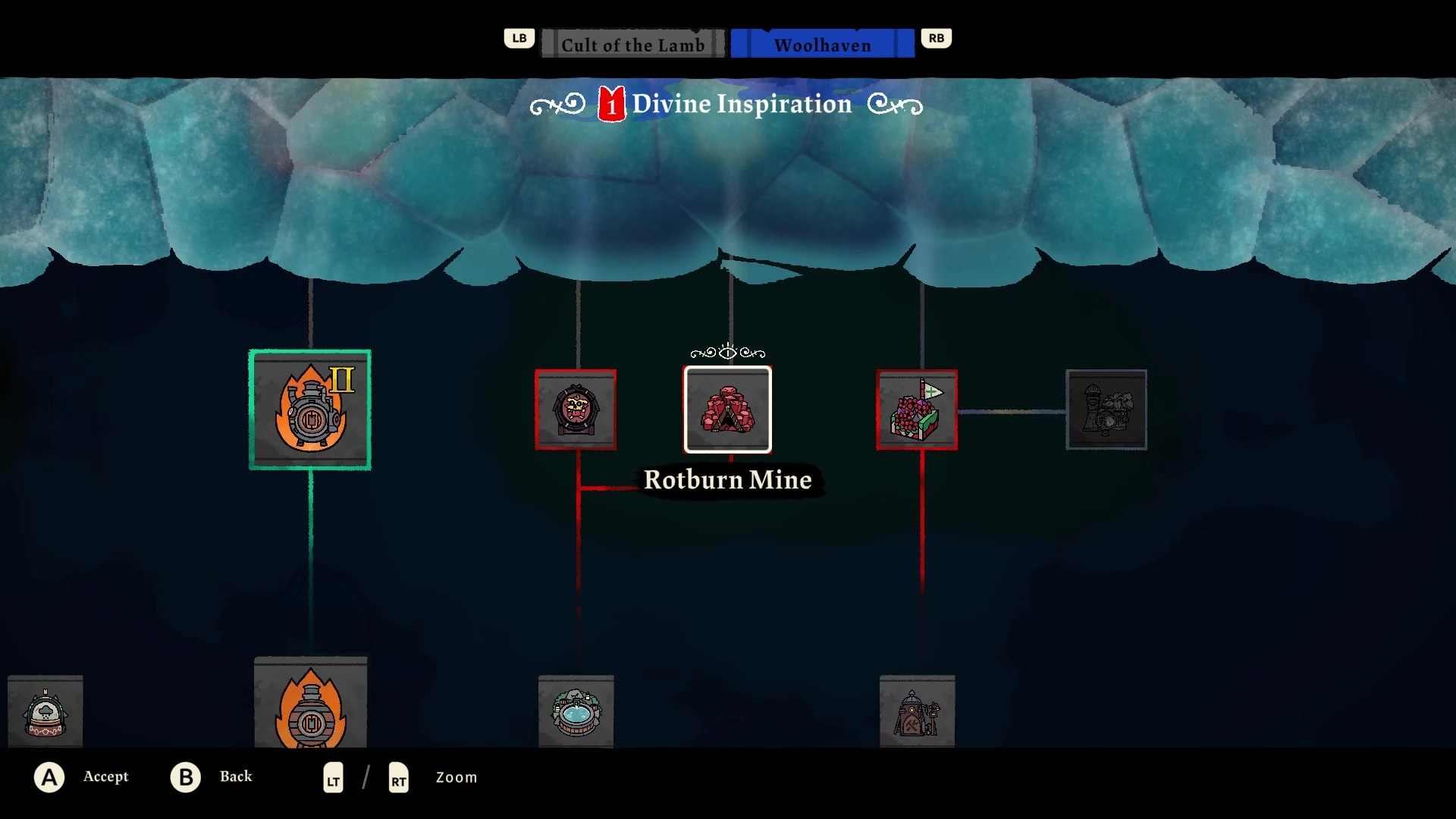 - Rotburn Mines: Rotburn mines are unlocked through the second phase of Divine Inspiration upgrades, which themselves become available when you return enough Lost Souls to Yngya to trigger the second level of Woolhaven Winter. They branch off the Baptismal Bath in the tech tree, and once purchased, you can build Rotburn Mines in your base that your Followers can constantly mine for fresh Rotburn.