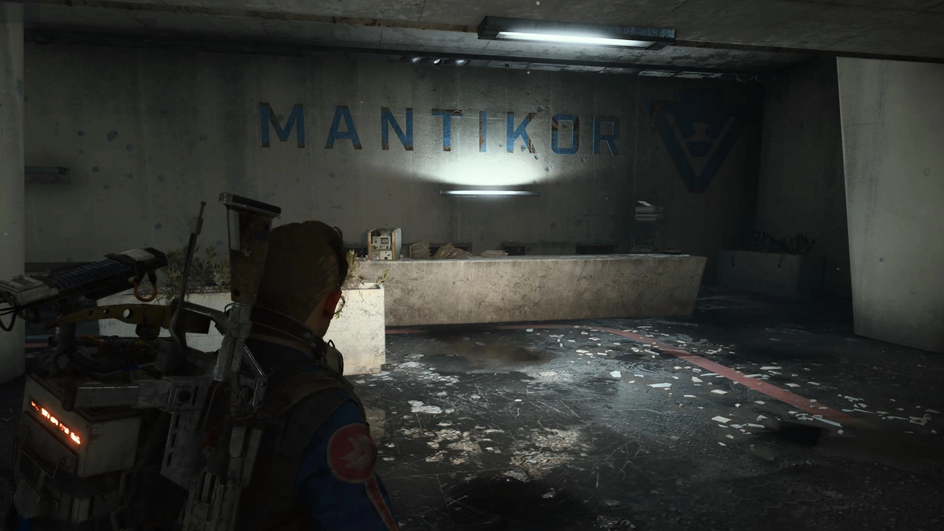 When you first get to Blue Gate, the first objective is to find Mantikor's Underground Facilities. There's actually several ways to access these, as it's the area behind the Blue Gate itself. For this mission though, we recommend you go down via the zipline at the unmarked building above, for reasons that will be explained momentarily. This will take you down to the Security Wing, where the rest of this quest takes place.
