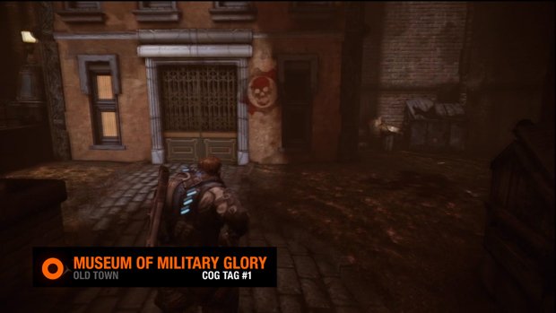 When you are waiting for the assault to begin to protect the armor, go to the hallway on the right hand side and there will be a body with the COG tag in there.