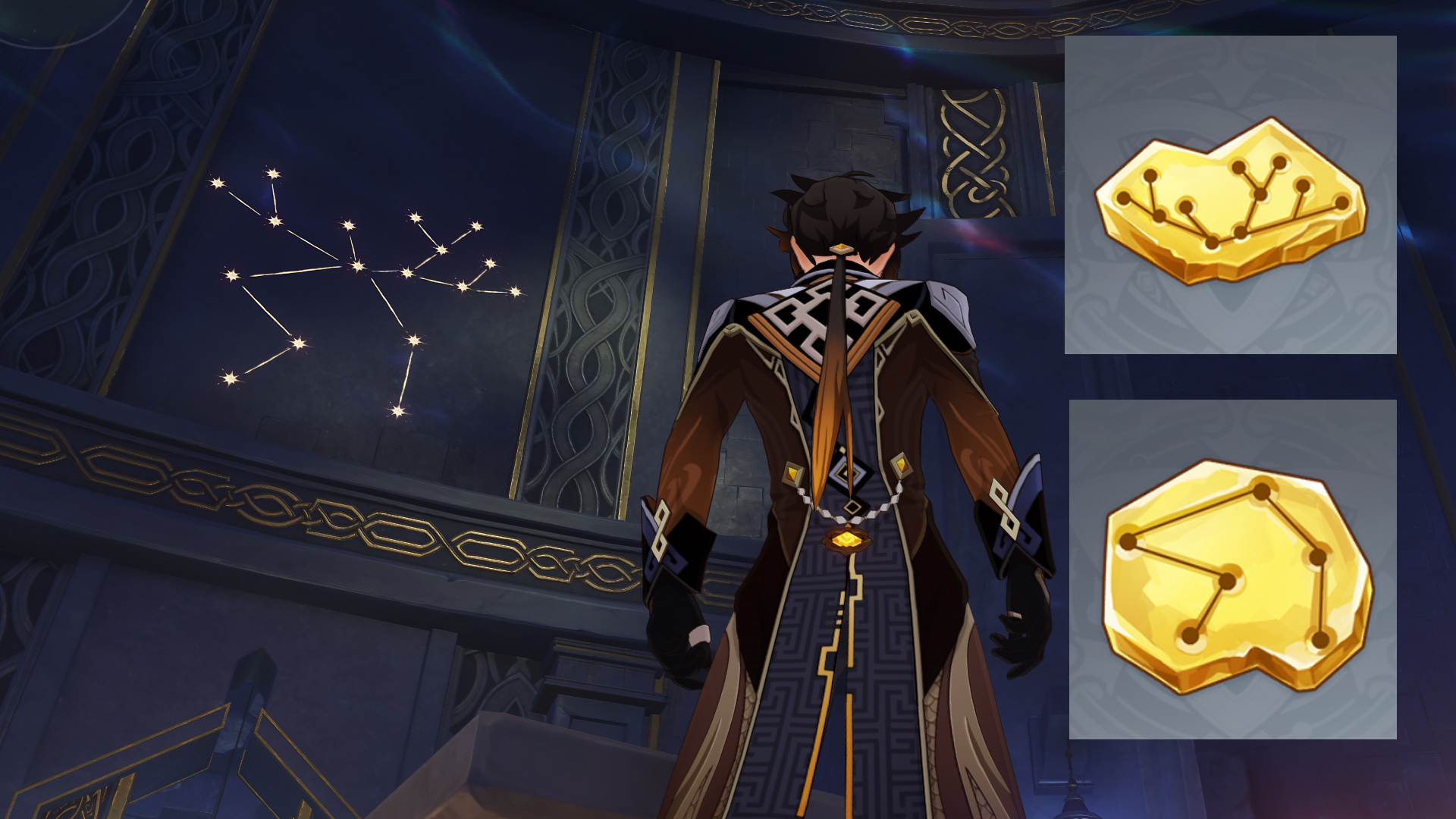 Go to the Mirage mechanism in the northwestern corner. Place the Asterism Shards as shown in the picture, and then solve the third Astral Puzzle. This time, the zodiac pattern is displayed in the next room (the sealed one) instead of on the roof.