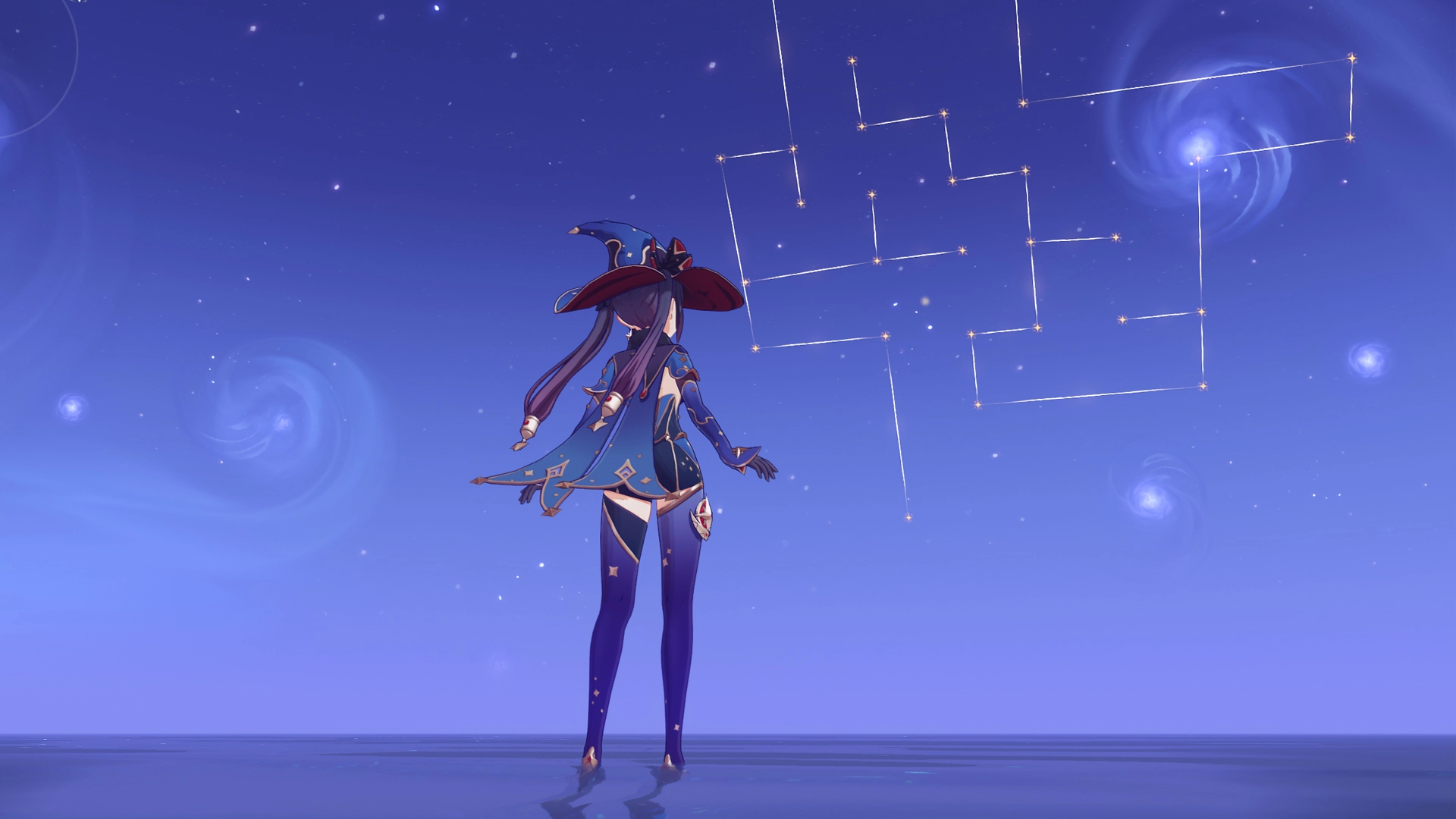 To solve the Astral Puzzle, you need to recreate the image in the sky. If you hit a blue orb, it will connect to another orb, thus drawing a line. In short, the orbs in the triangle need to point to each other, and the outer three need to point inwards. If you need more guidance, use our detailed guide on how to solve the Genshin Impact Astral Puzzles.