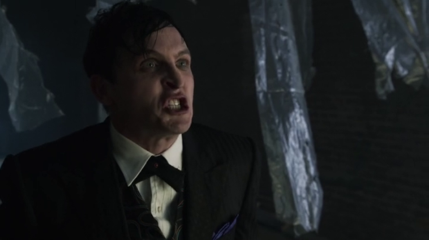 Less convincing is Harvey’s over-the-top reaction to Gordon’s “betrayal” at the start of the episode (threatening to shoot him in the changing rooms? Really?), and subsequent sudden conversion. Harvey’s reasons for changing his mind make total sense (he a dead man anyway, so he may as well die fighting the good fight rather than the bad) but juxtaposed with the earlier scene it feels all too convenient and trite. More of a problem is the fact that there’s still zero chemistry between Gordon and Barbara, and the fact that Barbara is being made to act like a moron. Coming back to Gotham to plead with Falcone? On what plane of existence would any single-celled organism think that’s a good idea? It just confirms our suspicion that for the writers, Barbara is more of storytelling cog than a real character.