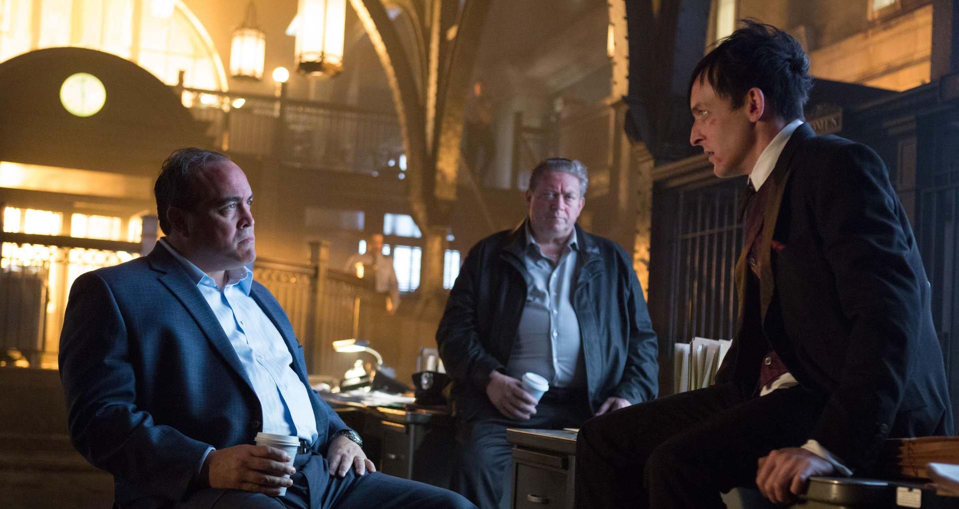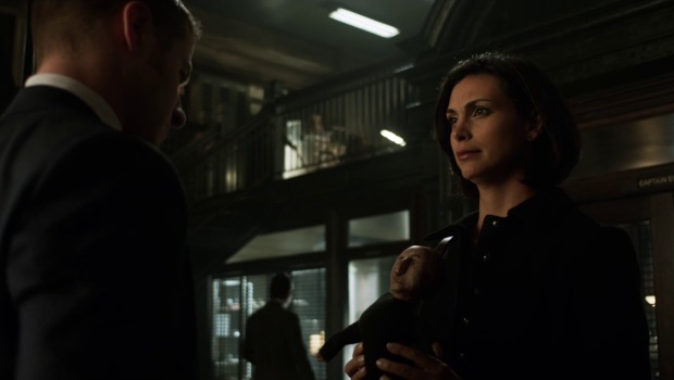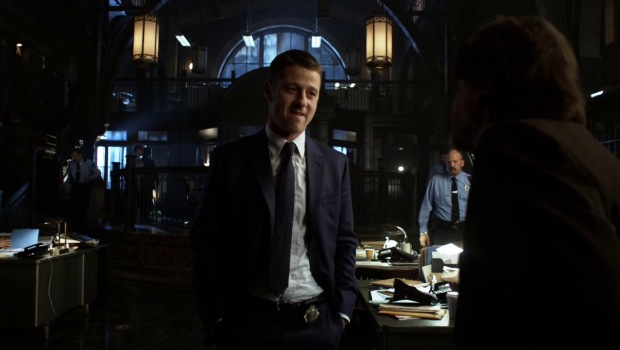 But the episode truly belongs to the gangsters, especially Penguin and Falcone. Maroni has returned to being a little bit of a buffoon, though the scene where he entertains the cops in GCPD HQ is a great little moment. It’s also not clear if he actually believes Penguin’s lie about his ill mother; hopefully not, but then, we did say he was back in buffoon mode.