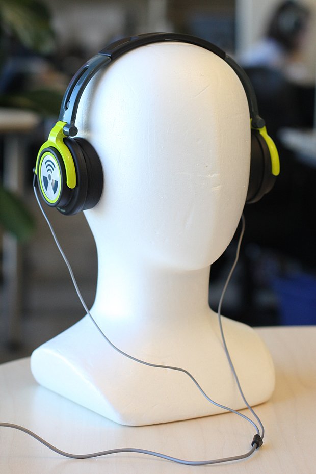 These are pure headphones – no mic – and they work only through a regular headphone jack. They don’t require power, and the price is reasonable. For “big” headphones they’re pretty compact, and they’re definitely going for the stylish approach, with numerous colors to choose from, like the electric green ones we tested. The sound is impressive for being relatively budget headphones, although every editor who tested it said the sound was a bit bass-heavy for their tastes, including one editor describing it as “muddy” sounding. The cord is only a few feet long so it won’t reach to your couch, although this could be circumvented with an extender.