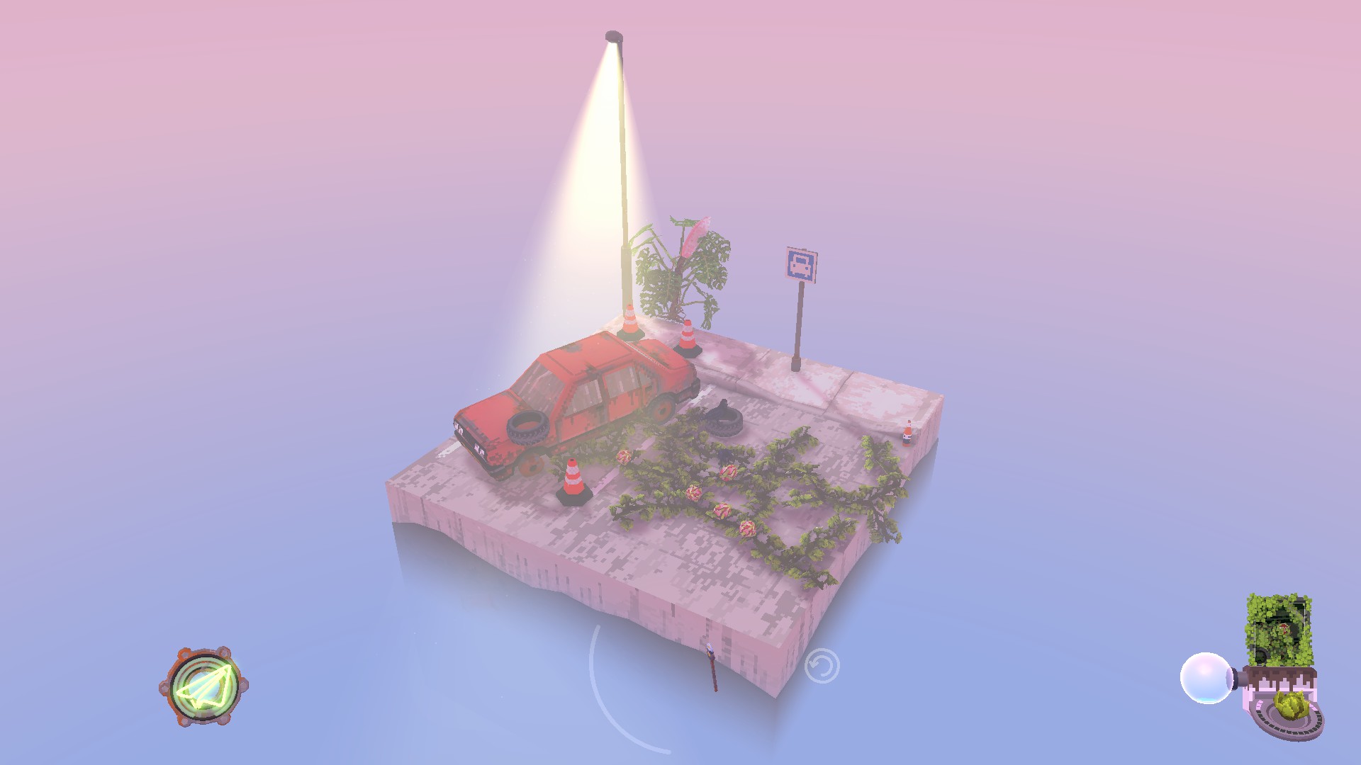 Released in Early Access, Cloud Gardens from developer Noio presents you with various 3D dioramas. Each one shows a different urban scene surrounded by an otherworldly mist, as though you're peering through a veil of clouds. Just like the caravan scene I encounter, you'll quickly notice that all of the locations you come across appear to be long-deserted and in a state of ruin – with the likes of broken-down cars without any wheels and rusty shopping trolleys long out of use. While you wouldn't normally associate words such as soothing and relaxing when it comes to a post-apocalyptic setting, there's something so incredibly calming and rewarding about watching the plants grow over the decay and give each area a new lease of life.