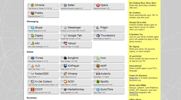 Above: Ninite lays everything out for you to lazily check off and gobble up