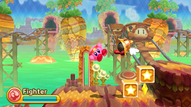 Dont let the Disney Jnr colour palette fool you: Kirby is badass. He turns into a ninja and combo-slices his foes, punishes them with a lion tamers whip even flattens three particularly cute ones with a massive stone block soon after the game begins. He is so gleefully evil, while looking like butter wouldnt melt if he inhaled it with his massive vacuum mouth. It probably wouldnt. It would probably turn him into a cowboy. But that just means--from what Ive played so far--this ostensibly kiddy platformer is a lot of fun for us grown-ups too.