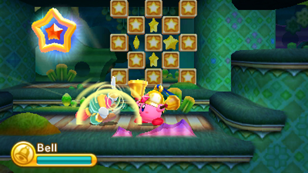 Nintendo has clearly perfected its techniques for 3D display. Everything is sumptuously presented, with solid 3D platforms and faux depth-of-field foreground blurring all adding up to one of the most magical-looking worlds yet seen on the handheld. Kirbys movement is 'arcade chunky' (I just made that phrase up and I'm keeping it) and assured, although the frequent need to run with a double direction tap does mean its easier to control on the D-pad, even if your thumb gravitates toward the circle pad by default.