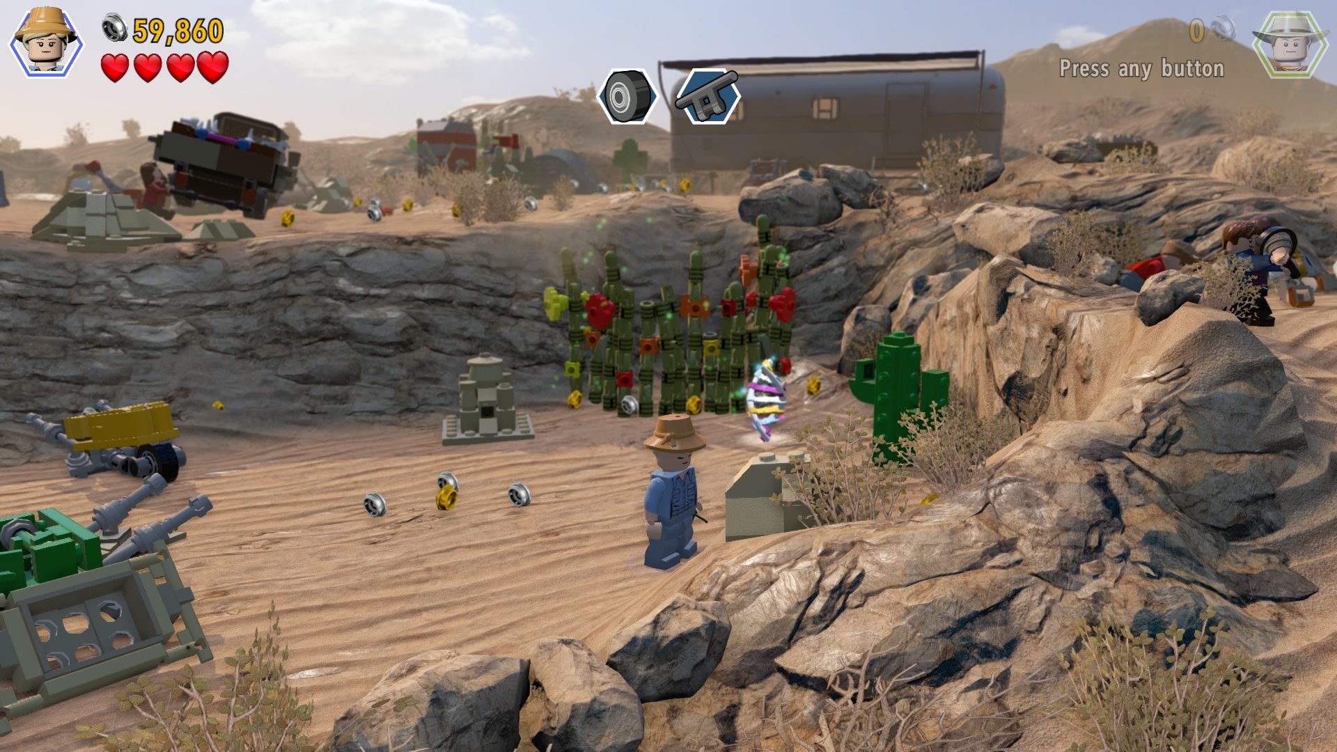 You'll find six minikits and an amber fossil brick squirrelled away in this sandy area.
