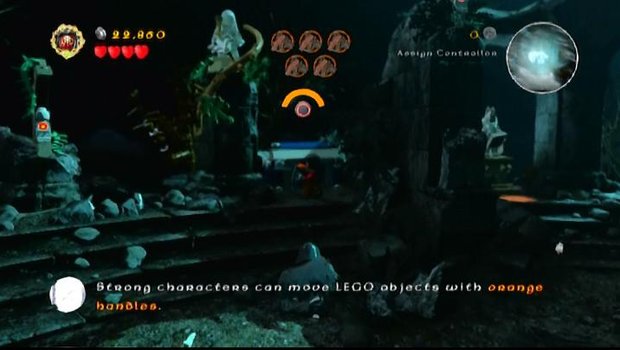Minikit #6: When you reach these dangling vines, use the Uruk-hai to pull out a glowing handle and reveal a minikit.