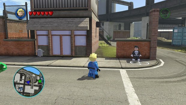 In the middle of the Scrapyard, you can find Rocket Raccoon. He's lost his knife, so follow the red studs into Yorkville. Bust up the grey dumpster over the nearby fence to find the knife, then return it to complete the first mission.