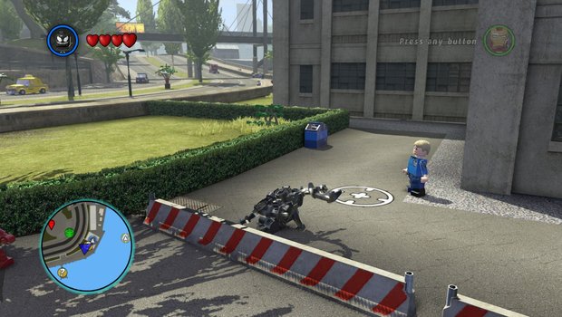 For your first Gold Brick, head to the eastern wing of the S.H.I.E.L.D. Helicarrier deck. The man here is missing a sensitive document. Follow the red studs to find the document tangled in some growth under the southern deck of the helicarrier. Bust these up, then use a telekinetic character to pull the document out from the wall. Return this to the man to earn a brick.