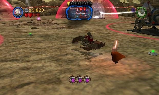 Use Sith Force to break apart the red-glowing pile of bricks to the left of the battlefield.