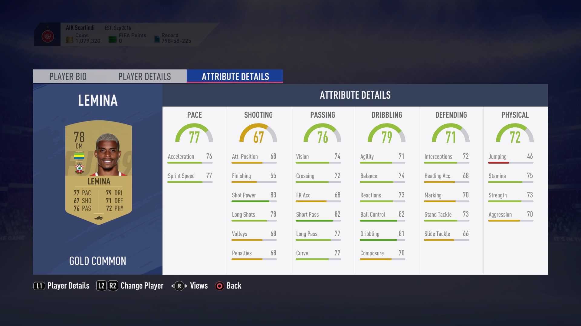 Pace is the attribute every FIFA player looks for when making a signing in Ultimate Team, and Lemina scores 77. As for career mode, his potential is a perhaps disappointing 83.
