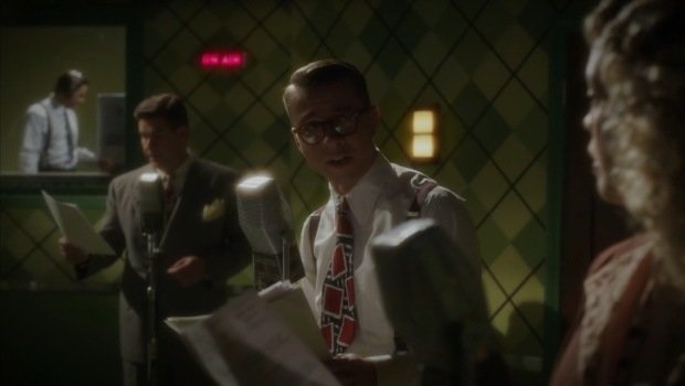 The Captain America radio serial team are back. They were least seen (and heard) in episode two, and it’s such a great device it’s a shame they weren’t used as the first scene in every episode, like a mix between a Greek chorus and a ’60s style “coming up in this episode” teaser device.