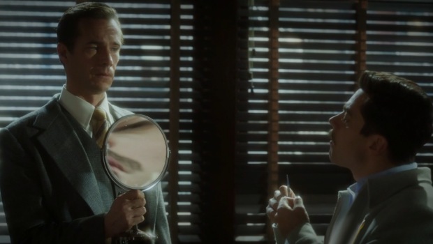 Fennhoff’s big bad scheme is all so amorphous and off-stage (we never even see a Times Square crowd scene to ram home the potential tragedy) it fails to inject any tension into the plot, while the big climax is hampered by the fact that a guy in a plane talking to a woman over the radio isn’t particularly visually exciting. Okay, we get the Peggy/Dottie fight which is decent enough, but way too brief. Plus Dottie looks so much the superior fighter that when Peggy wins you can’t help thinking the Russian spy threw herself out of the window on purpose. (Though she does bid goodbye with an obvious piece of foreshadowing: “Maybe I’ll be an SSR agent next. What do you think of that?”)