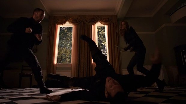 The episode opens with a scene that makes it look like SHIELD is going be in even deeper shit, but Coulson manages to turn it round within 45 minutes thanks to the convenient coincidence that a useful politician happens to be Ward’s brother. Still, you can’t blame him for using his assets. The splinter bombs are an eye-catching visual and the running gag that follows the opening massacre – with all the agents clarifying, “That wasn’t us… right?” – is fun, especially the punchline. Hunter’s less concerned with who caused the massacre than the fact he has to join his wife on a mission.