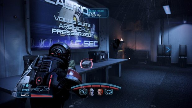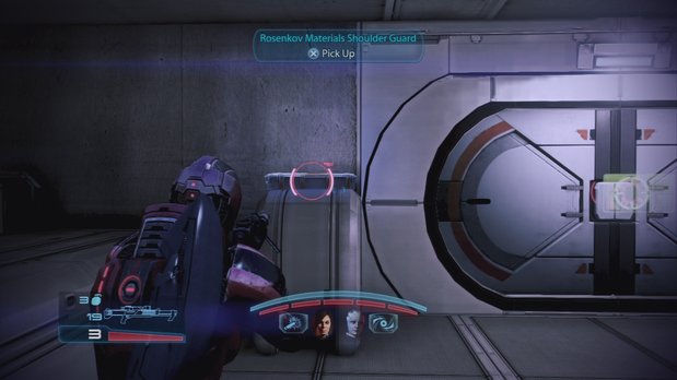Delumcore Overlay: Soon after you watch the second set of the Illusive Man’s video logs, you’ll see this blue-tinted hole to your left. Instead of jumping down to proceed, head past it and into the room on the right. Inside, behind some crates, you’ll find this overlay.